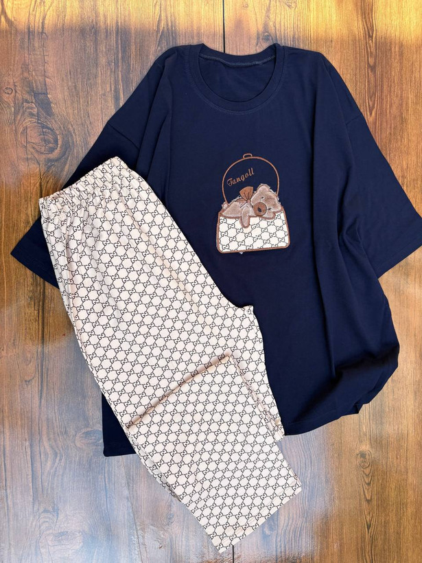 ست تیشرت (باکسی )شلوار گوچی خرسی