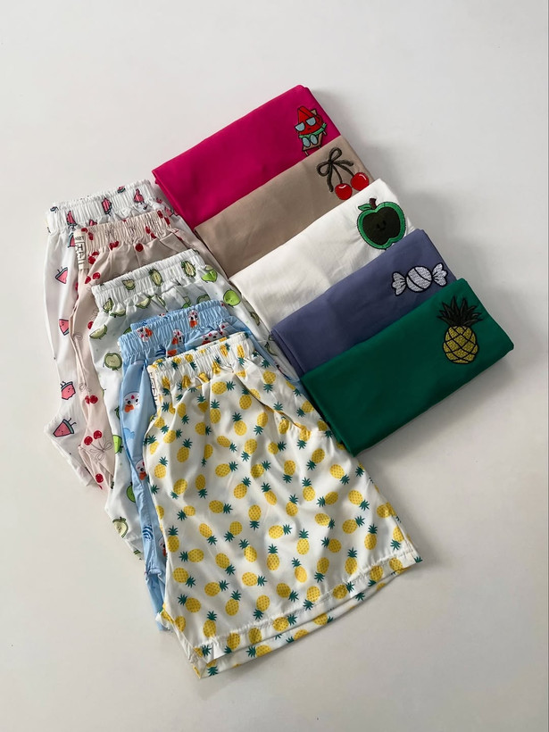 جنس تیشرت نخ پنبه و جنس شورتک کرپ نخی، قد جلو تیشرت ۵۵، قد پشت تیشرت ۶۰، قد شورتک ۳۸.