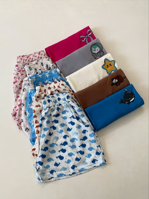 ست های پینترستی شامل تیشرت نخ پنبه و شورتک کرپ بوگاتی با دور سینه ۱۰۰ در حالت عادی. قد شورتک ۳۸، قد جلو تیشرت ۵۵ و قد پشت تیشرت ۶۰.