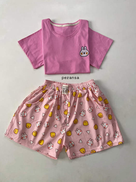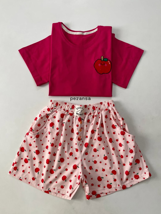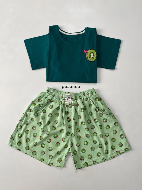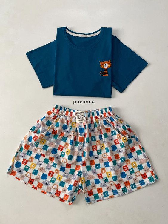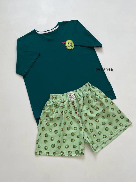 این ست شامل تیشرت با جنس نخ پنبه و شورتک با جنس کرپ نخی میباشد. دور سینه ۱۰۰ سانتیمتر در حالت عادی و قد جلو تیشرت ۵۵ سانتیمتر و قد پشت آن ۶۰ سانتیمتر و قد شورتک ۳۸ سانتیمتر است.