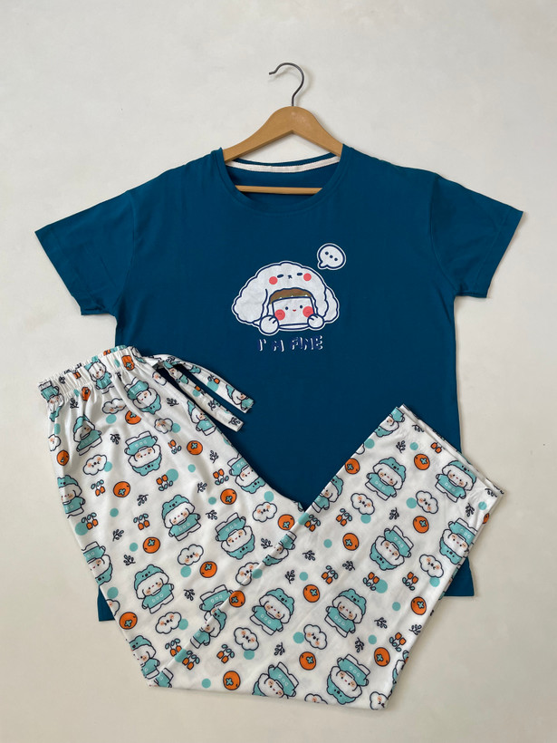 فری سایز۳۶ الی۴۶ جنس تیشرت نخ پنبه جنس شلوار پنبه اسپان (نرم و لطیف و زانو نمیندازه) قد تیشرت۶۸ قد شلوار۹۸ دور سینه در حالت عادی۱۰۰ دور کمر۶۰ با کشسانی۱۲۰